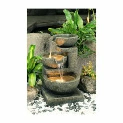 H65cm Ogen River Leap 4-Tier Cascading Water Feature with Lights | Indoor/Outdoor Use by Ambienté