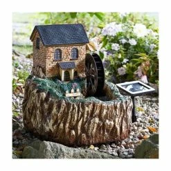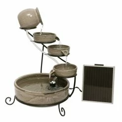 H55cm Earthenware Solar Water Feature with Battery Backup and LEDs by Solaray