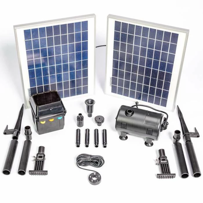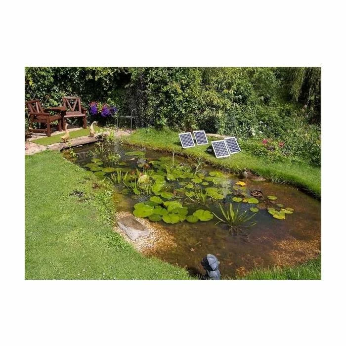 Adding a solar powered pump to your garden pond is the easiest way to add life to water fountains, water courses, and lights in your pond without the need for mains power. Even if there is a power outlet near the pond, solar power is the smart and safe way to go in this age of rising energy prices and global warming. Perfect for water gardeners wanting a green solution.