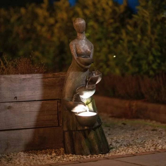 Statuesque and striking at a metre tall, this tiered cascade water feature is made of UV- and frost-resistant polyresin (to resist life’s wears and tears) and cast in the shape of a feminine idol, with a conchiglie-shaped bowl in her arms. Featuring a five-level cascade and water-filled reservoir, this water feature will be a great talking point for any garden or table. And, with LED lights to illuminate the water flow and feature, you can enjoy every part of this fountain come day or night.