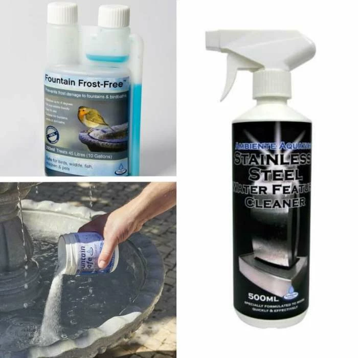 Developed Exclusively for Ambienté Aquatics. As the name implies this new generation water feature additive ‘Fountain Safe’ will help you to effortlessly protect your shiny new water feature from troublesome algae build up whilst ensuring that the safety of your children and pets is not compromised.