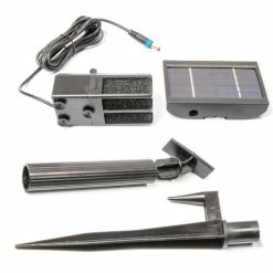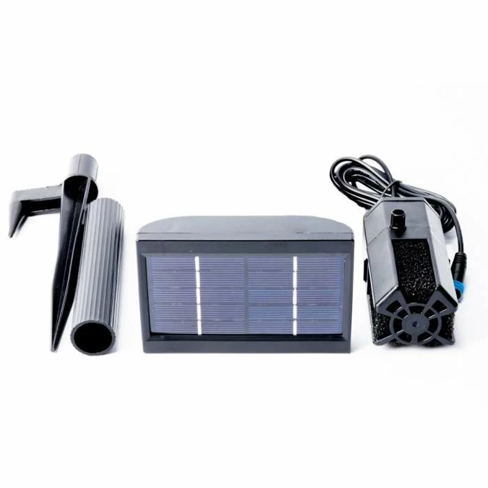 Use this solar water pump kit to replace an existing pump of an old water feature or to convert it into a solar water feature. With six hours battery life when fully charged, this water pump is a reliable way to power your water feature. This pump is not only eco friendly but also has no running cost and is incredibly easy to set up. It is designed to operate on a pulse timing function, to be on for 2 seconds and then off for 5 seconds making a lovely talking point in any garden.