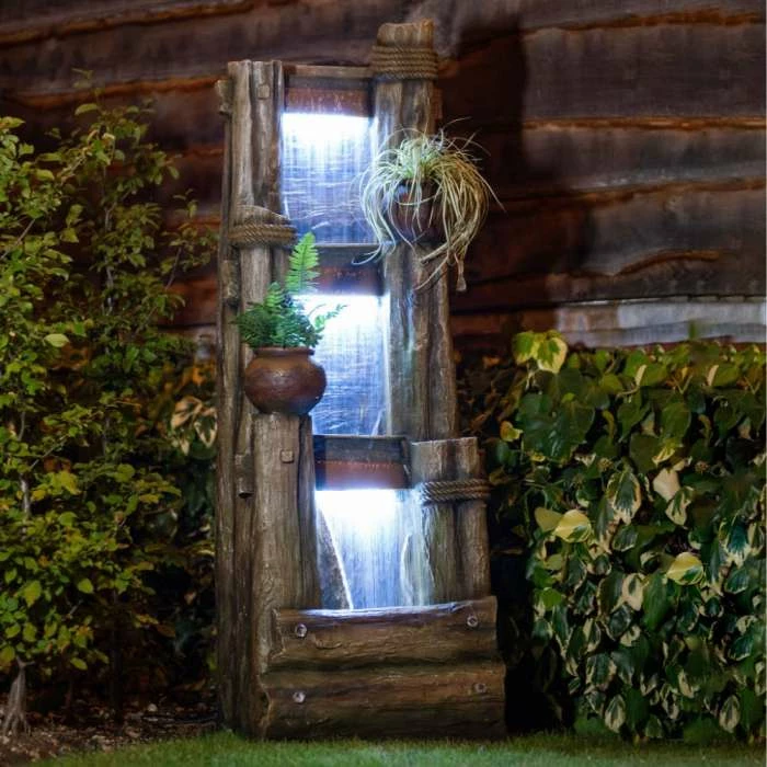 A planter with a difference, this wood effect water feature will add a whole new element to your plant presentation while letting you add a personal touch to your flowing feature. This cascade water feature is made from UV- and frost-resistant polyresin and fibreglass (to resist life’s wears and tears) and cast in the shape of a wooden multi-step waterfall. With an internal water reservoir, you can place this on any floor or table as an interesting talking point and calming noise maker. And, with LED lights to illuminate the water flow and feature, you can enjoy every part of this fountain come day or night.