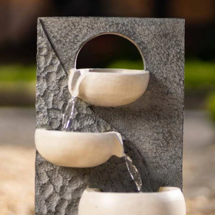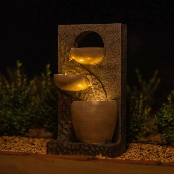 A water-filled piece of modern art, this cascade water feature is made from UV- and frost-resistant polyresin (to resist life’s wears and tears) and cast in the shape of pouring bowls set in a stone-effect frame. Featuring a four-level cascade and water-filled reservoir, this water feature will be a great talking point for any garden, and all it needs is a sunny spot to get the water flowing. And, with LED lights to illuminate the water flow and feature, you can enjoy every part of this fountain come day or night (with battery backup!).