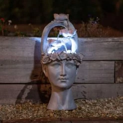 Standing proud with an eye-catching design, this tiered cascade water feature is made of UV- and frost-resistant polyresin (to resist life’s wears and tears) and cast in the shape of a woman’s head adorned with flowers. Featuring a three-level cascade and water-filled reservoir, this water feature will be a great talking point for any garden or table. And, with LED lights to illuminate the water flow and feature, you can enjoy every part of this fountain come day or night.