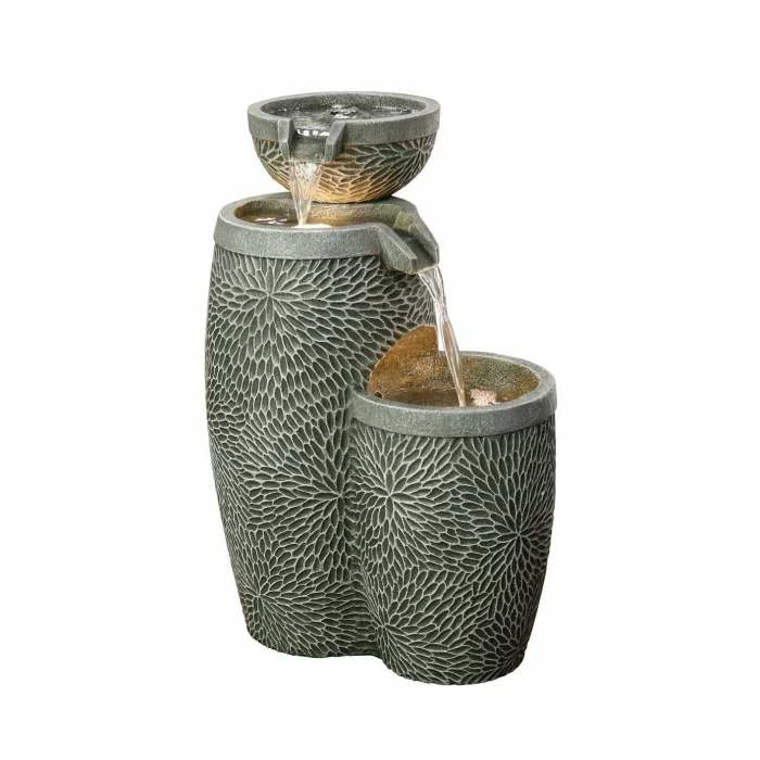 Dartmouth Pouring Bowls by Aqua Creations This beautifully designed water feature is a must have for any area. Fully self-contained means no digging required. Supplied with a LED light which illuminates the water at night, for you to enjoy further into the evening with friends and family.