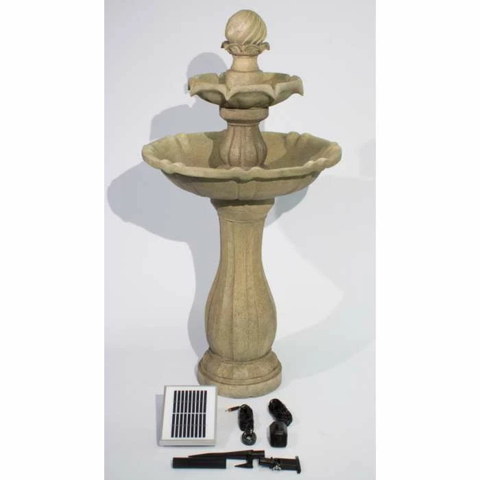 H112cm Antique Imperial Round-Tiered Solar Water Fountain with Lights by Solaray