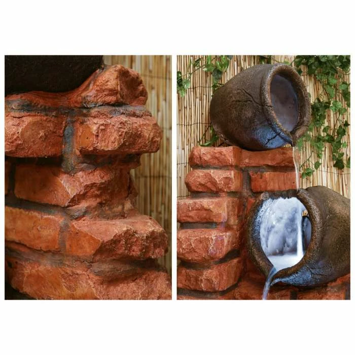This beautiful water feature featuring four oil jars with lights has been exquisitely crafted and designed to look and feel almost exactly like real, natural, clay jars. Enjoy relaxing to the sound of water gently trickling through the feature, adding a real sense of tranquillity to any setting in which it is placed. With its authentic appearance, this brick-effect water feature will make a fantastic addition to your garden or home.