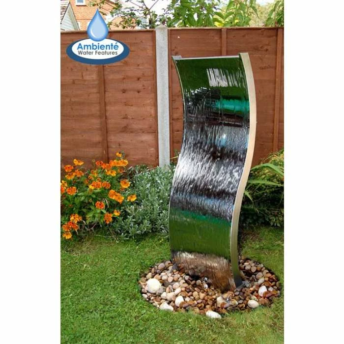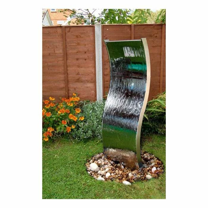 This stunning, contemporary water wall with elegant curves will make a striking focal point to any garden or outdoor area, delighting adults and children alike. Watch how the water gently cascades down both sides of the wall, catching the light and creating a mesmerizing effect. It comes complete with a reservoir and pump, along with all the accessories required for installation.