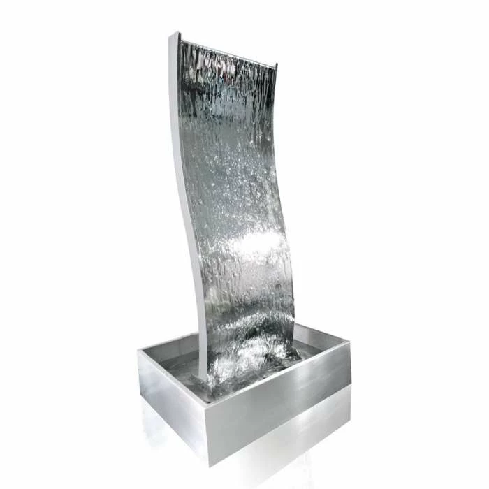 This stunning, contemporary water wall with elegant curves will make a striking focal point to any indoor or outdoor area, delighting adults and children alike. Watch how the water gently cascades down both sides of the wall, catching the light and creating a mesmerising effect. It comes complete with a reservoir and pump, along with all the accessories required for installation.