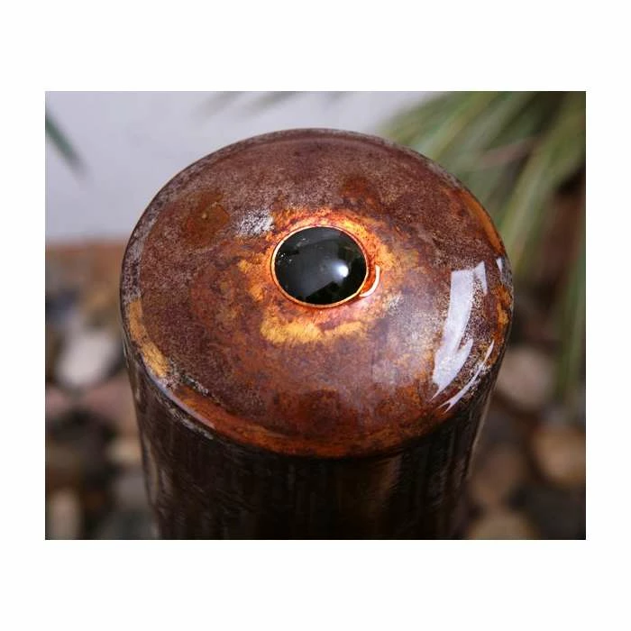 This water feature starts off looking like any other steel feature. However, after just a few days of use, it will develop a rust-like surface that also has a protective layer. This layer protects against further corrosion, and it is completely unique, so no two features are the same.