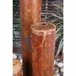 H135cm 3-Tiered Tubes Corten Steel Water Feature with Colour LEDs by Ambienté