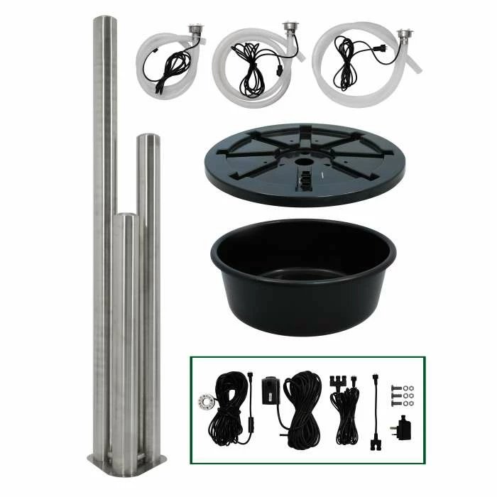 H156cm 3 Brushed Tubes Stainless Steel Water Feature with Lights | Indoor/Outdoor Use by Ambienté