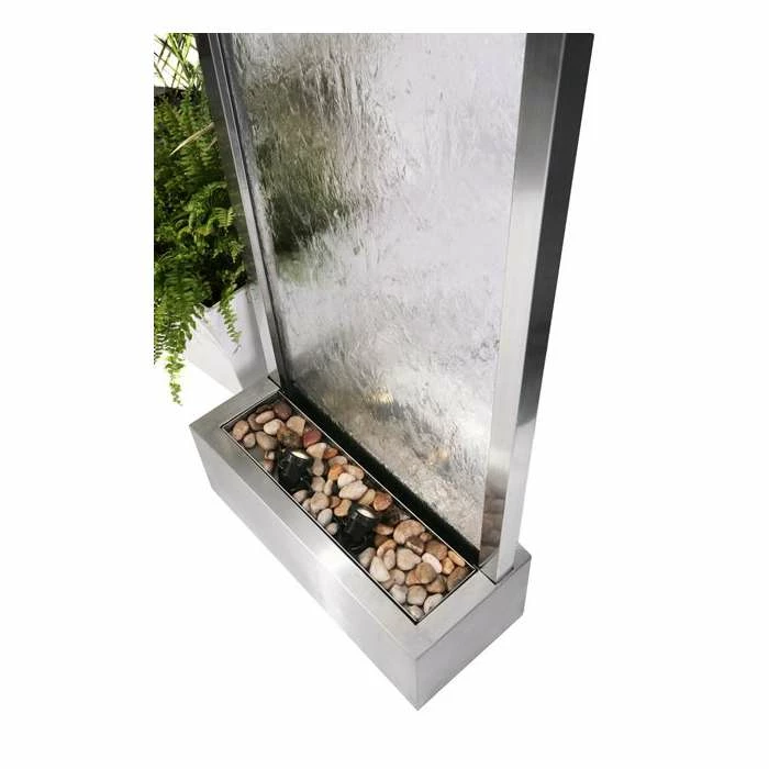 H173cm Silver Falls Stainless Steel Water Wall with Lights | Indoor/Outdoor Use by Ambienté