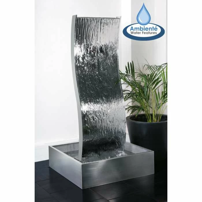 This stunning, contemporary water wall with elegant curves will make a striking focal point to any indoor or outdoor area, delighting adults and children alike. Watch how the water gently cascades down both sides of the wall, catching the light and creating a mesmerising effect. It comes complete with a reservoir and pump, along with all the accessories required for installation.