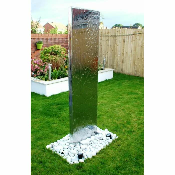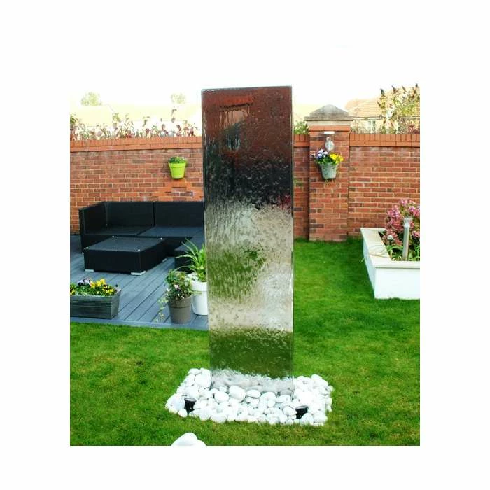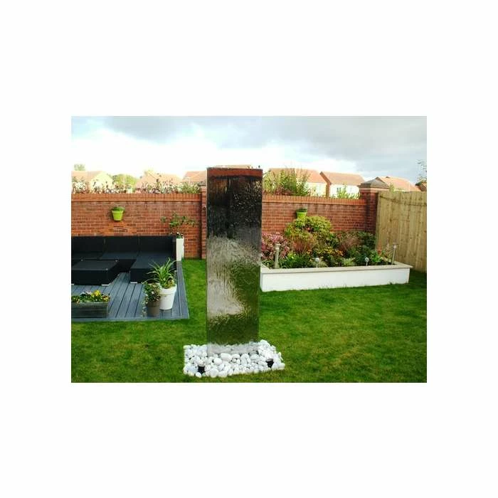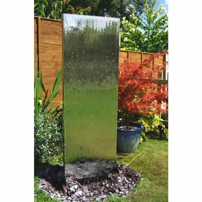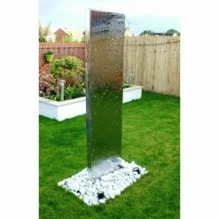 This stunning contemporary water wall will make a striking focal point in any garden or outdoor area, delighting adults and children alike. Watch how the water gently cascades down both sides of the wall, catching the light and creating a mesmerizing effect. It comes complete with a reservoir and pump along with all the accessories required for installation.