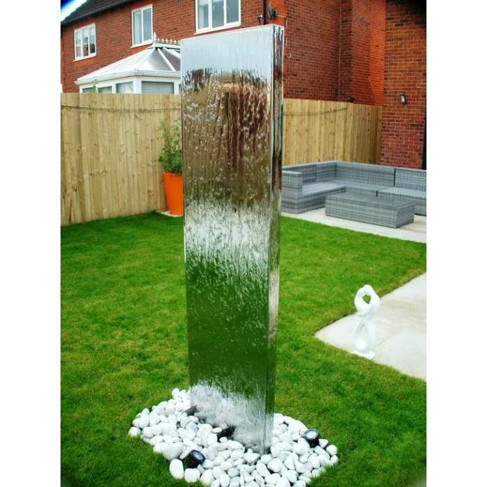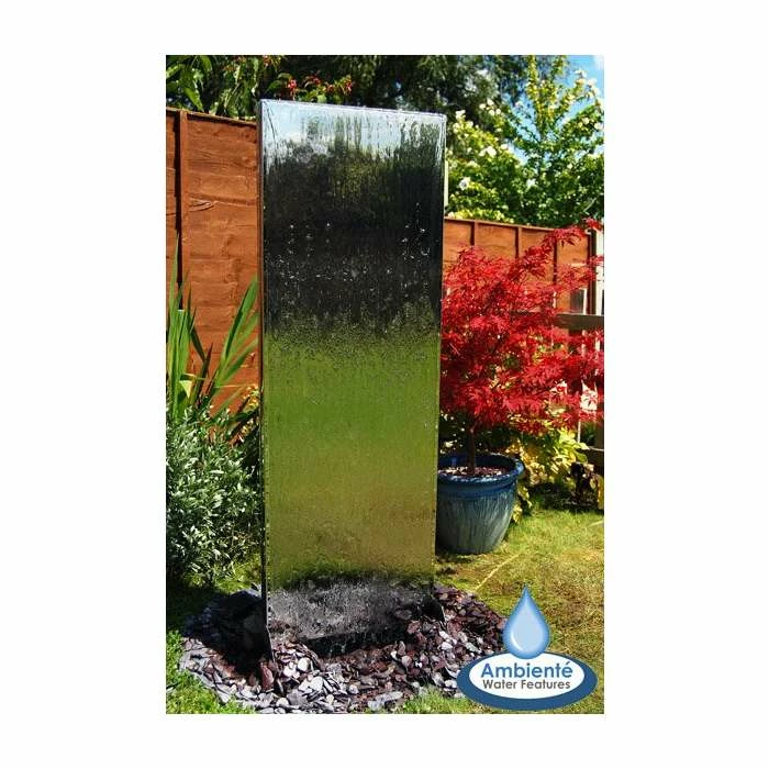 The back and front of the wall are made from high quality 1mm thick polished stainless steel sheets with thicker sides between 1.5mm up to 3mm. The stainless steel is extremely resistant to corrosion, making it a perfect material for water features.
