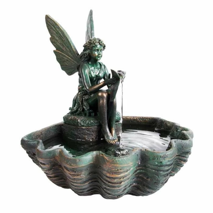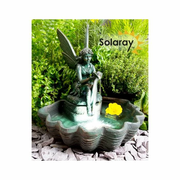 H30cm Fairy on Clam Shell Programmable Solar Water Feature with Lights by Solaray
