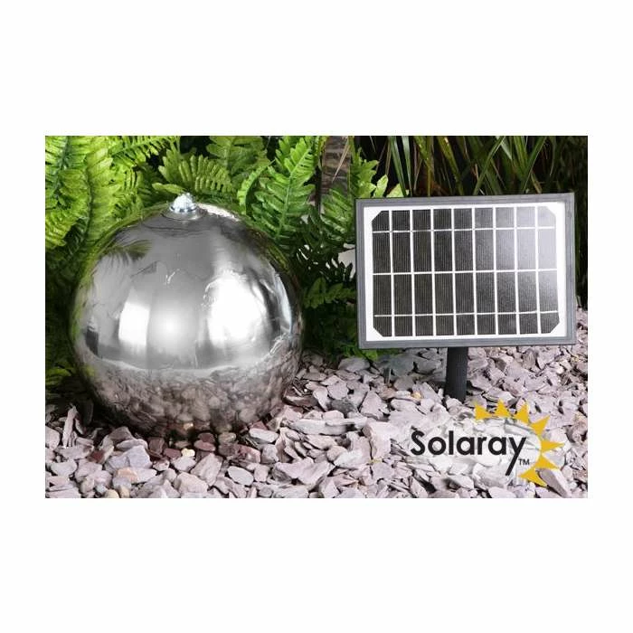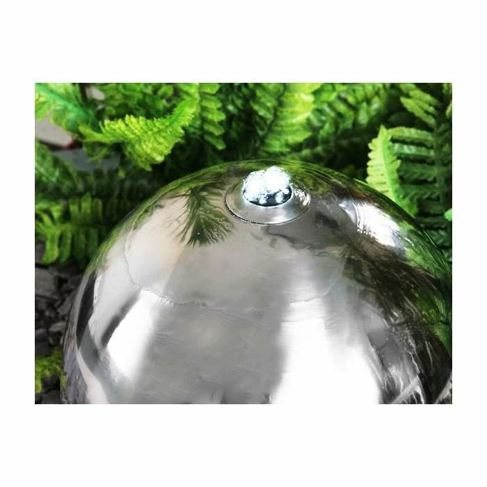 H45cm Sphere Solar Stainless Steel Water Feature with Lights – Outdoor use by Solaray