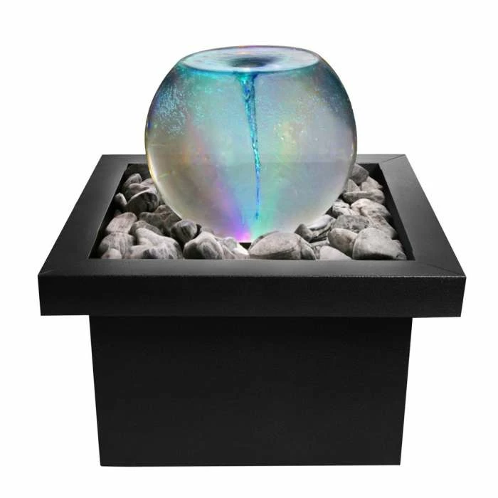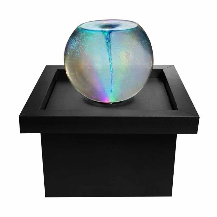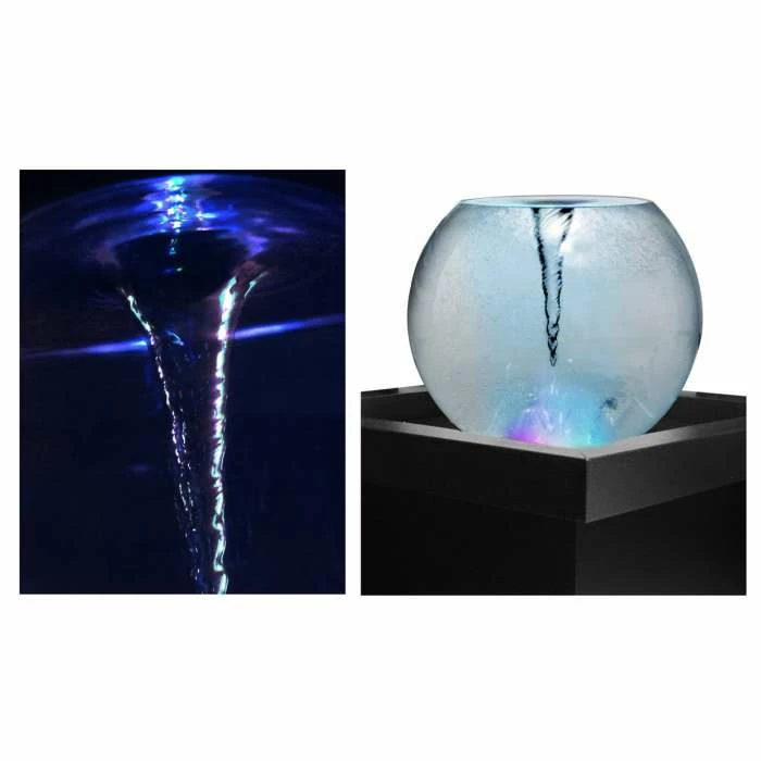 This stunning vortex water feature will make for a show stopping focal point within your home. The whirlpool is illuminated through a spectacular array of colours, making this a great feature to watch day or night. This water feature is raised on a zinc coated steel base for optimal viewing and to ensure that this feature will become a much loved addition to your home. Simply fill the feature with clean water, connect to a power source, and go.