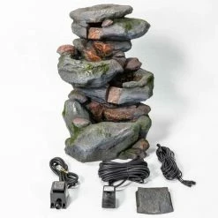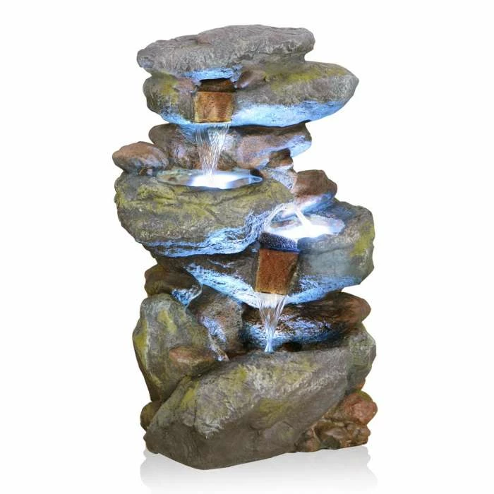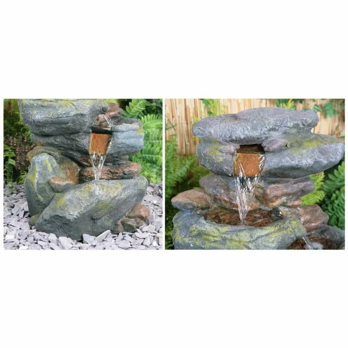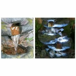 This great water feature that is cleverly disguised to appear as stone is actually made from high quality polyresin material, which is far lighter and more practical than stone. It has been meticulously moulded with great precision to form a realistic design that will definitely draw admiring glances. Combining classic looks and modern manufacturing techniques, polyresin is both frost and UV resistant, helping the water feature to withstand the elements. Three powerful white LED lights not only illuminate the water feature, but also enhance and transform the water itself as it gently cascades from tier to tier, creating a simply stunning spectacle which is very soothing to sit by. A fantastic water feature, guaranteed to enliven your surroundings.
