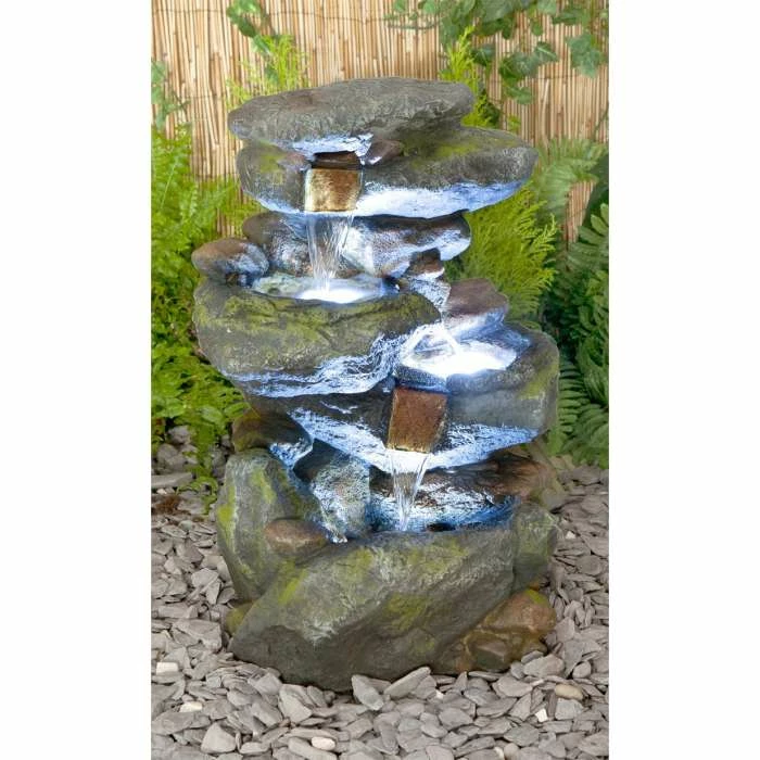 H55cm Bekko Falls 3-Tier Cascading Water Feature with Lights by Ambienté