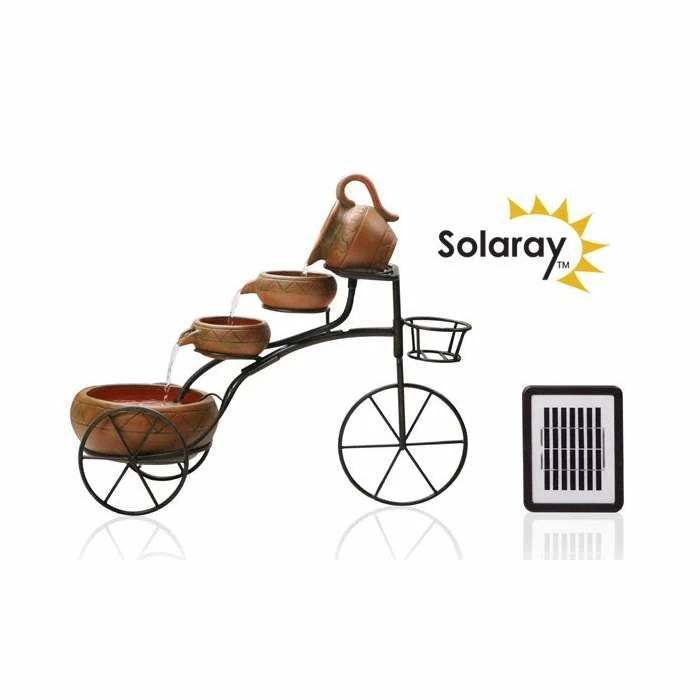 H57cm Bicycle 4-Tier Cascading Solar Water Feature with Planter Basket by Solaray