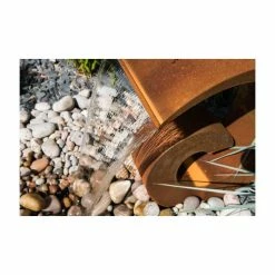 This magnificent water feature is manufactured from Corten steel, which provides it with its spectacular unique appearance. As water flows from the spout of the feature, the Corten steel reacts to create a layer of rust, thereby oxidising the surface to provide weatherproof and corrosion-resistant qualities as well as a striking rustic aesthetic. Weathered steel is quickly becoming a staple of modern architecture, praised for its unique contemporary style.