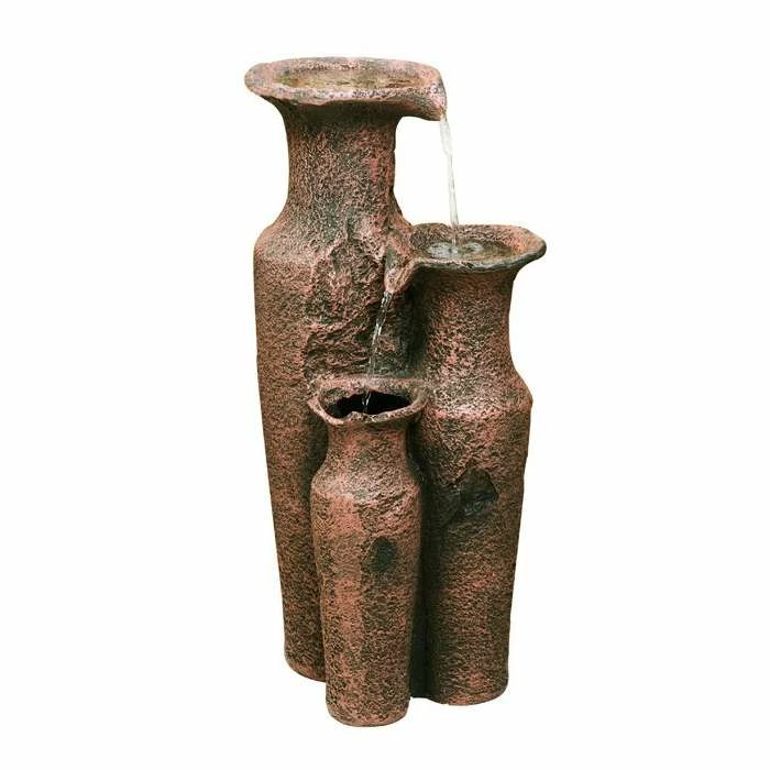 This authentic-looking water feature, featuring three jars, has been crafted out of high quality polyresin to create a stunning antique-effect. Relax, as the cascading water brings a sense of peacefulness to your surroundings. It is specifically designed to enhance the sound of water trickling from one bath to another, making this feature a fantastic addition to your home or garden.