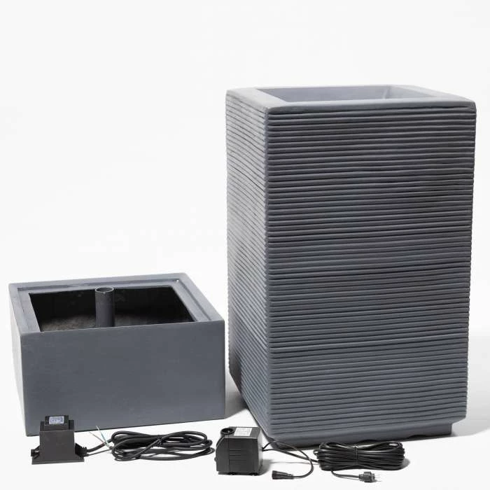 This dazzling water feature and its stunning rippled effect is certain to become the centrepiece of your garden. As water pools on the top and cascades down the sides, it runs in and out of the grooves and creates a soothing splashing sound, allowing for a beautiful visual effect. The LED light brings this water feature to life in the evening, emitting a soft glow that plays off the rippling water. This water feature is mains operated, meaning it can be turned on at any time of day or night, without the need for solar panels or batteries.