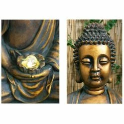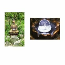This stunning, antique, gold-effect Buddha will make a wonderful addition to your garden, conservatory, or any other indoor or outdoor area. It features a crystal-like sphere that amazingly appears to float on the water itself, casting a magical glow when the LED lights highlight the feature. Watch the water calmly flow out of the lotus flower, through the Buddha’s hands, and into the reservoir below.