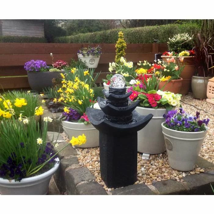 Add an element of contemporary style to your garden with this elegant water feature. Enjoy the soothing sound of water flowing down the tiers of the fountain, while the LED crystal ball adds an iridescent shimmer to the feature. The lighting enables you to enjoy the effects of the water feature day and night, and will create a tranquil atmosphere in your garden.