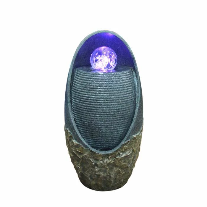 Straiton Spinning Ball by Aqua Creations, Is a must have for any given space. This feature allows the ball to rotate and cascade the water through the rippled column which then recycles the water throughout. The striking feature also has an LED light which then gives the feature that extra wow factor, making it a must have for any given customer.