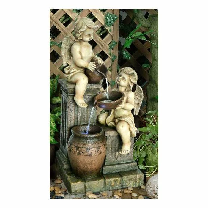 Two Angels with Spilling Urns 3 Tier Water Feature with LED Lighting