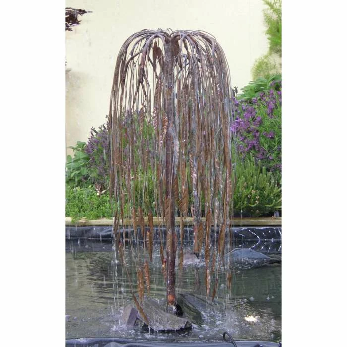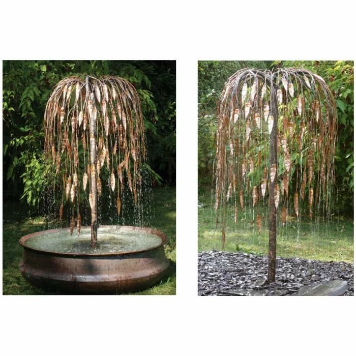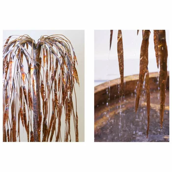 The Weeping Willow is a beautifully sculptured and relaxing water feature with a mass of copper foliage, finely cut elongated leaves and branches. From some of these leaves springs water drops recreating the relaxingly soothing tunes of a light summer rain.